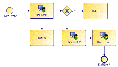 In this process, flow proceeds from User Task 1 to the gateway without necessarily waiting for Task A to finish. If User Task 1 and Task A are refactored into a subprocess, an end event is inserted into the subprocess, effectively synchronizing the flow. TIBCO Business Studio - BPM Edition prompts you to confirm this change to the process: