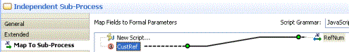 The data field CustRef in the parent process is mapped to RefNum in the sub-process. In the subprocess, the parameter RefNum is used by the single user task: