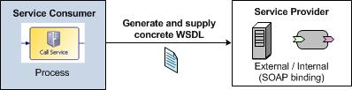 Use the following procedure when you want to call a service (internal or external) that is exposed on a SOAP binding, and define the process data that you want to send and receive, then generate a WSDL that defines the service contract.
