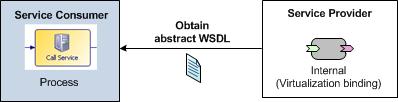 Use the following procedure when you want to call an internal service that is exposed on a virtualization binding, and obtain the WSDL that defines the service contract from the service provider, then configure the process to send and receive the appropriate data.
