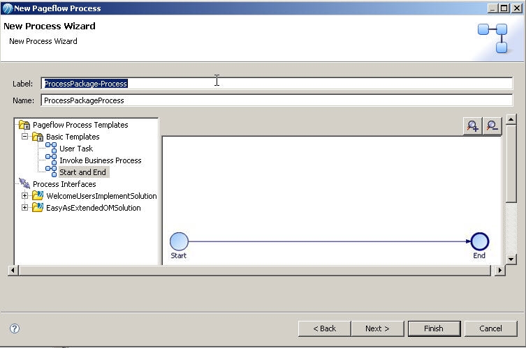 In addition to the process templates, you can select a process interface as the basis for your new pageflow process. This creates a process with events and parameters that are specified in the process interface.