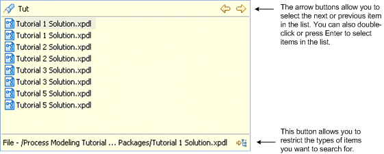 TIBCO Business Studio provides different tools to find objects in a diagram.