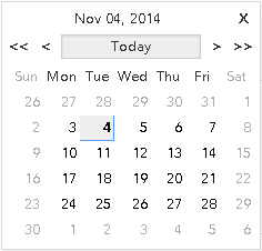 The Date control allows users to specify date, either in a string in the correct format, or by clicking a calendar widget. The calendar opens when the user clicks the icon next to the Date control’s text field: