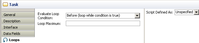Loop MaximumOptionally specify an integer to control the maximum number of times the activity is performed. In the event of conflict between Loop Maximum and the result of the JavaScript defined under Script Defined As, the Loop Maximum overrides the script calculation.