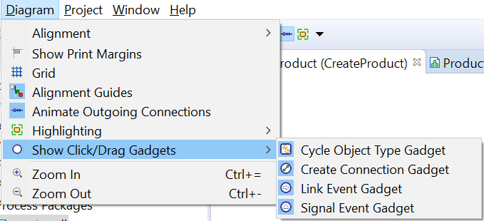 A gadget is a user interface aid that allows you to easily create sequence flows or other links between objects.