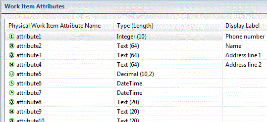 - When you create a Work List Facade project, the Work Item Attributes table opens. If it is not already open, select WorkListFacade.wlf from your Work List Facade project.