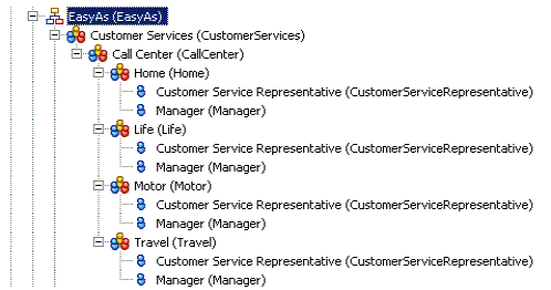 An example of a Customer Services Organization Unit that contains Sub Organization Units and Positions is shown below.