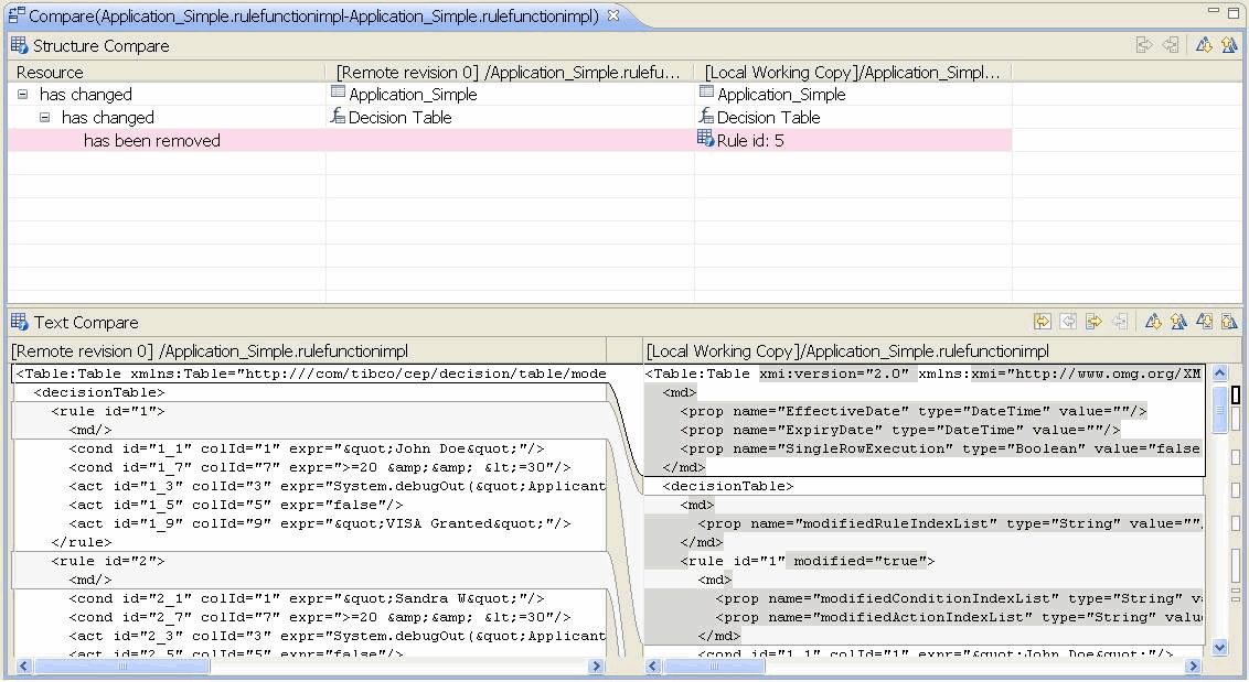 You can compare a decision table with another decision table in the project.You can also copy all or selected differences between the two tables under comparison.