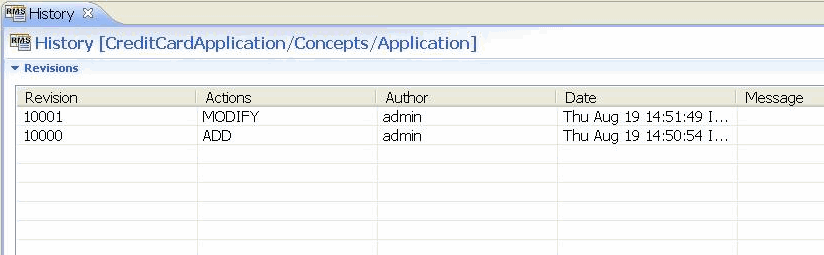 The History View shows the history of all the artifacts checked in to RMS and allows you to compare the revisions.