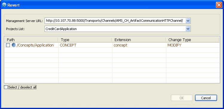 When you revert the changes done to an artifact, the working (local) copy of the artifact gets overwritten by the master copy.