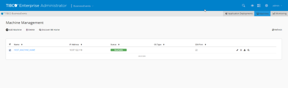 You can add a machine, edit a machine, or delete the machine from the machine repository of the BusinessEvents Enterprise Administrator Agent using the Machine Management page.