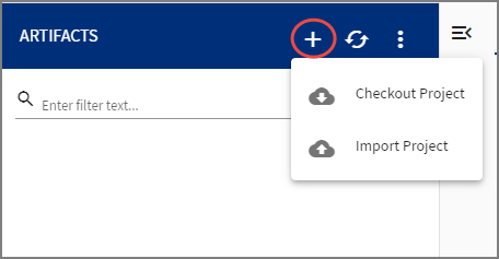 On the Welcome page, click the Upload icon.(On the Workspace tab) Click on the Checkout/Import Project icon under the Artifact Explorer pane and click Import Project.The Import Project dialog opens.