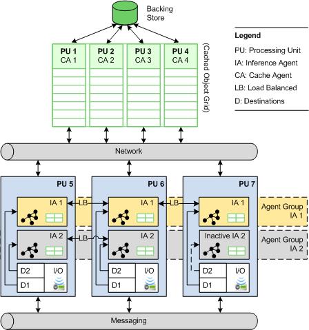 - Fault Tolerance (of data): Notifications to inference agents so that the state of each agent’s working memory remains synchronized with the others, so any agent in the cluster can take over in event of a JVM failure.