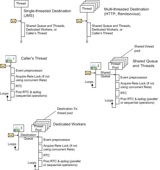 Event preprocessing is multithreaded, and for each destination you need to choose a threading option: Shared Queue, Destination Queue, or the Caller’s Thread.