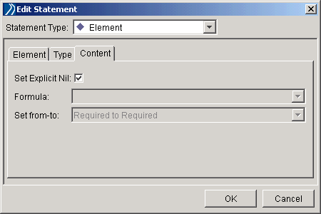 - (XPath 1.0) Click the Content tab of the Edit Statement window and select the Set Explicit Nil check box.