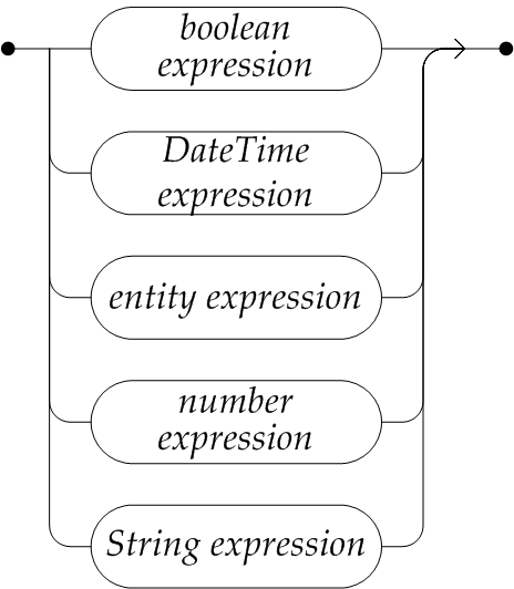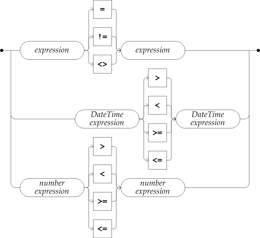 The syntax diagrams shows the structure of a query and of each clause in a query.