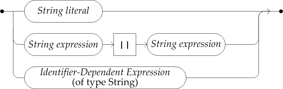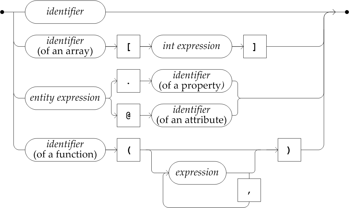 Read them from left to right. Items above or below the main line are optional. Items that can repeat are shown by lines that loop back from the end to the beginning of the repeating section, along with the separator character.