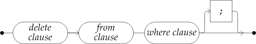 - Each statement deletes instances of one specified concept type, which is specified in the from clause. You cannot use more than one concept type in the from clause (that is, joins are not supported).