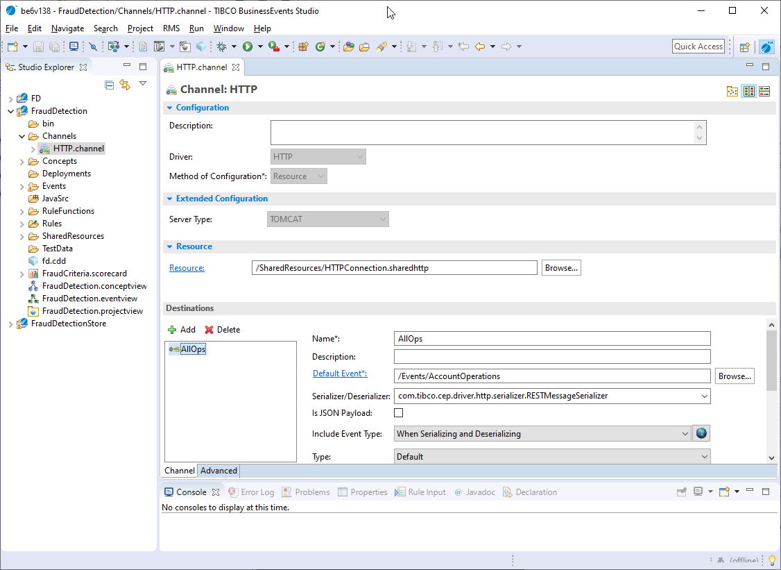 Note: In the editor, you cannot change the resource name but you can update the description, if needed. You can later rename the resource using a shortcut menu refactoring option. - In the Channel Name field, type