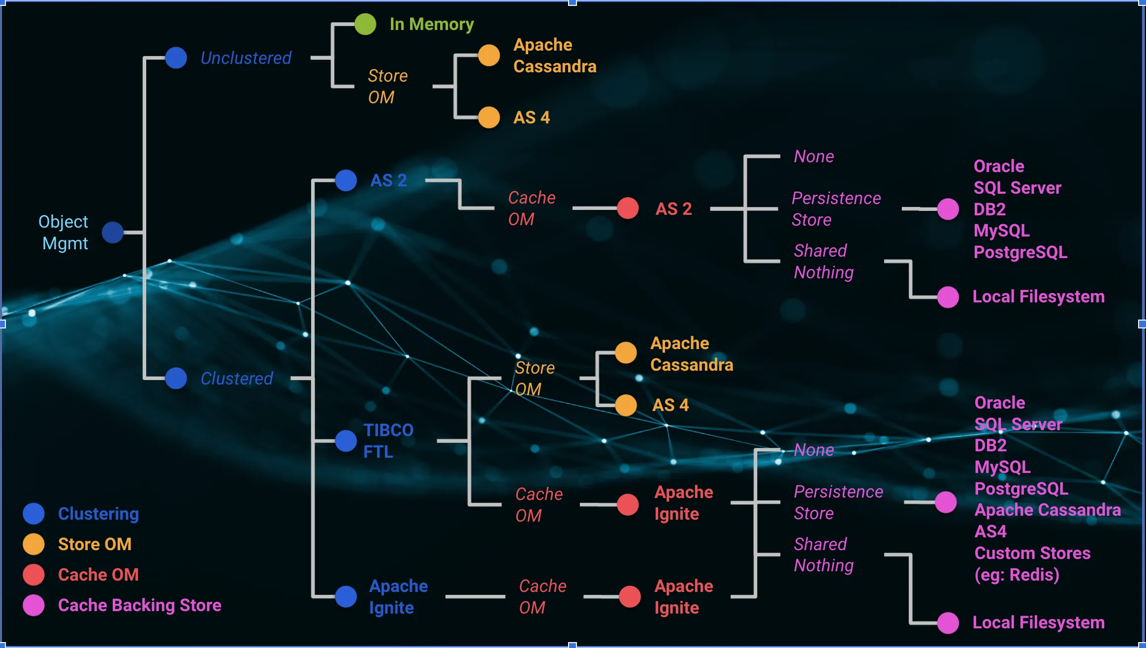 Requires project redesigning for the No Cache option Requires store option implementation For details, see Configuring ActiveSpaces as a Store Provider and Configuring Apache Cassandra as a Store Provider. |