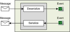 For each type of channel (except local channels), TIBCO BusinessEvents uses a serializer to convert events to messages and a deserializer to convert incoming messages to events.