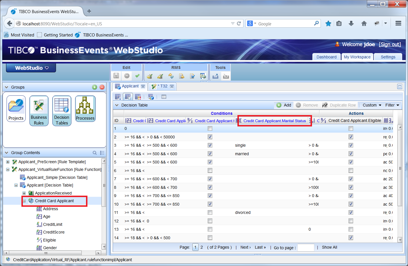 In the WebStudio run time, the display text for the properties, which are defined in the display model, are displayed instead of the element name. The display model for the artifact and its properties are created in the TIBCO BusinessEvents Studio. See the TIBCO BusinessEvents Developer's Guide for more details on how to create display models.