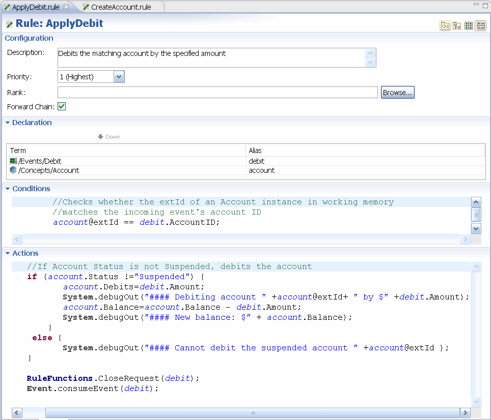 In addition, a screenshot of the ApplyDebit rule is shown below.