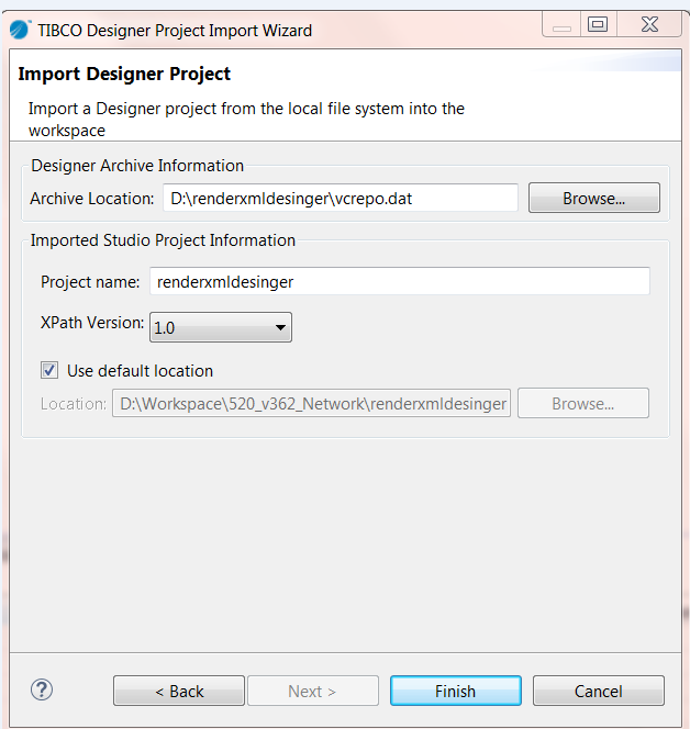 In the Archive Location field, browse to the location of the TIBCO Designer project and select its EAR file or its