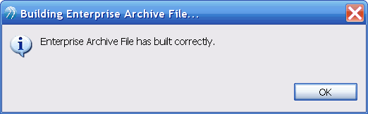 3. Click Apply, then click OK. You see messages as the EAR file builds, then you see a message that the EAR file has built correctly: