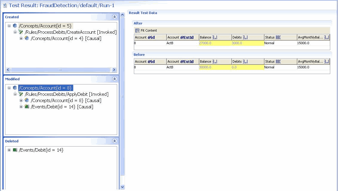 After data is asserted to the working memory (see Running Tester), a run to completion (RTC) cycle occurs and you see the following: