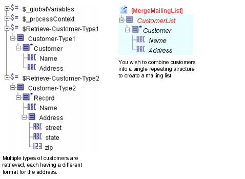 For example, you may have multiple formats for customer records and you wish to create a single, merged mailing list containing all customers in one format.