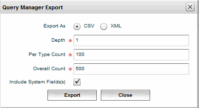 2. Click Export. The Query Manager Export window opens.