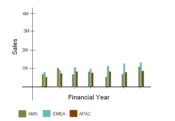 Suppose you need to create a chart that displays your company’s sales figures for each month in a financial year, broken down by region: Americas, Europe, and Asia Pacific.