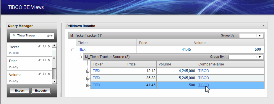 The Ticker and CompanyName fields are both hyperlinks, because you