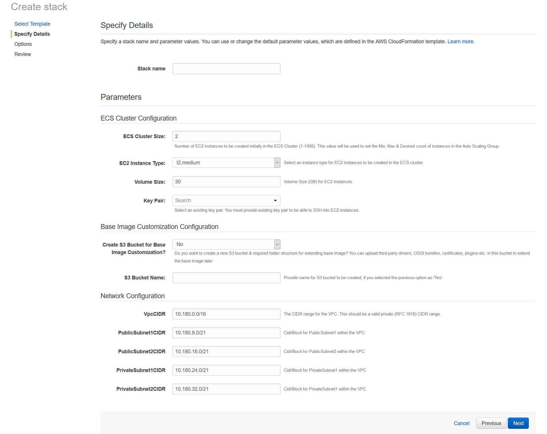 ECS Cluster Size field, enter the number of ECS hosts you want to deploy.
