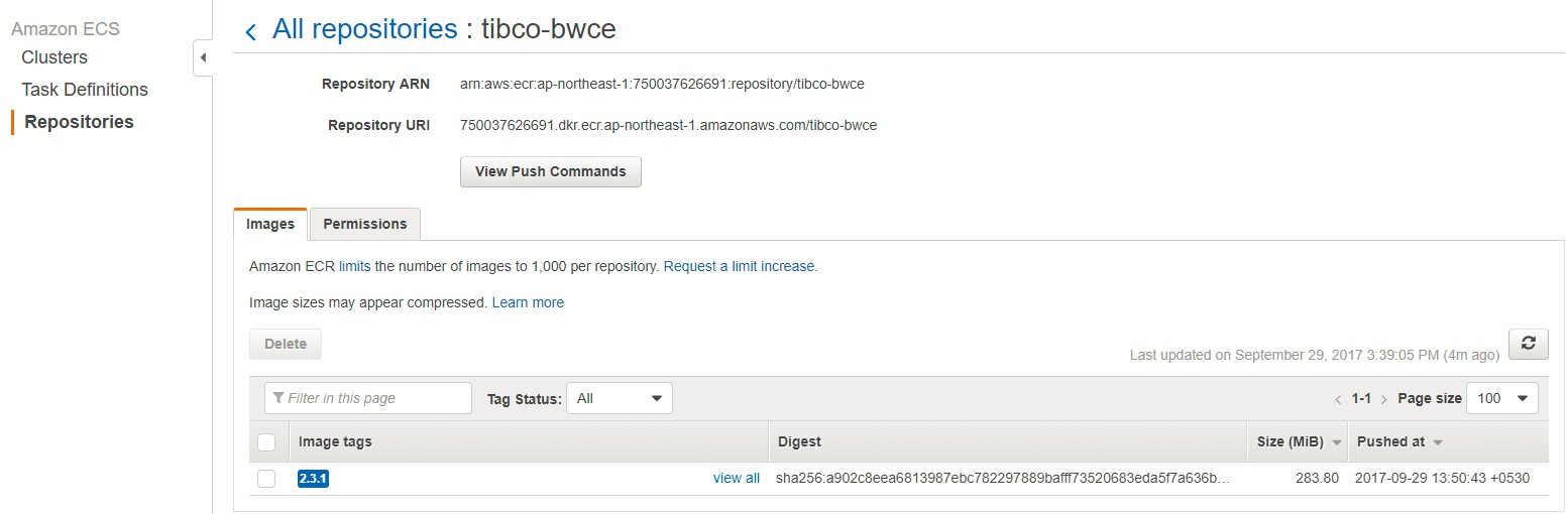 - In the Docker file, ensure that the base image points to the TIBCO BusinessWorks™ Container Edition runtime base image, which is created by the CloudFormation template.