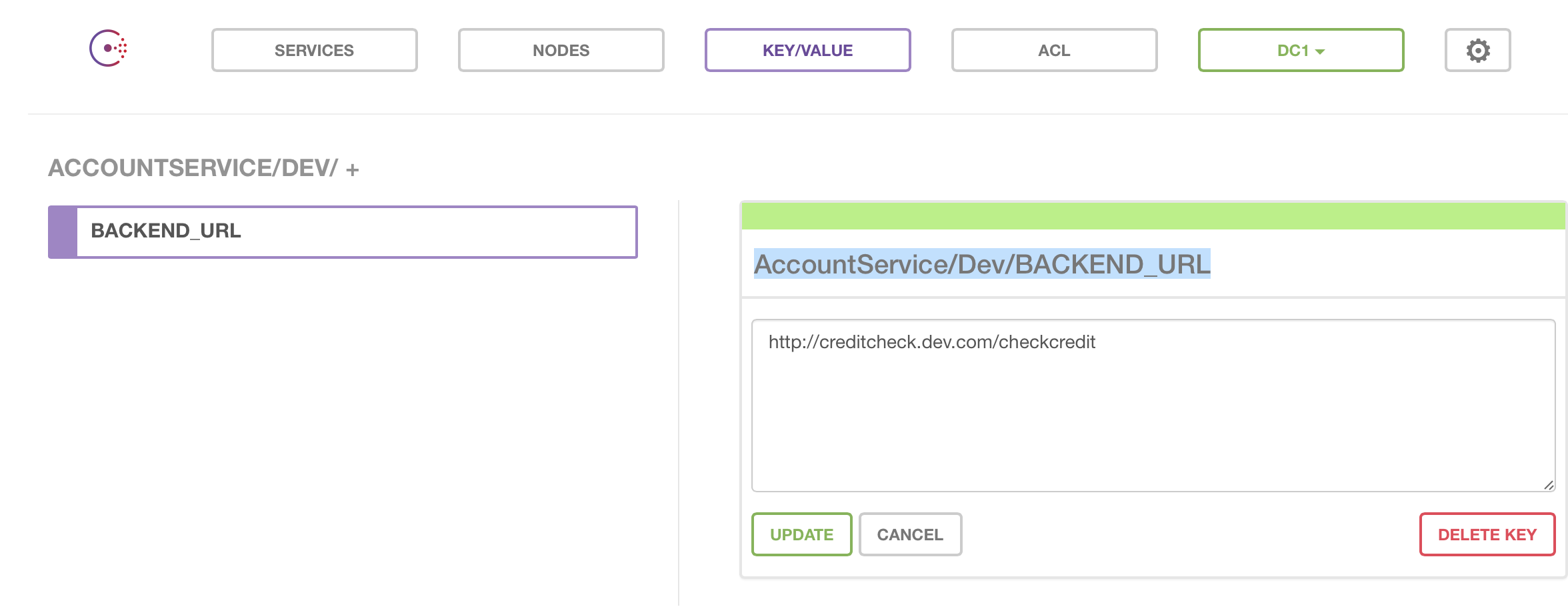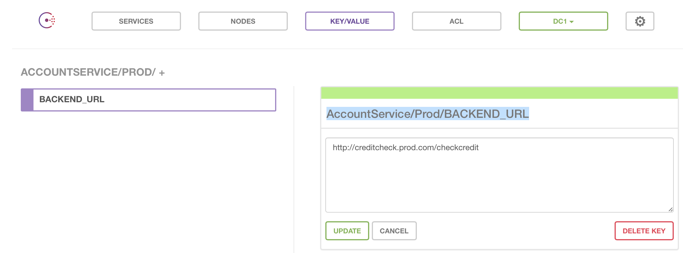 - In your Consul service define the keys using the format