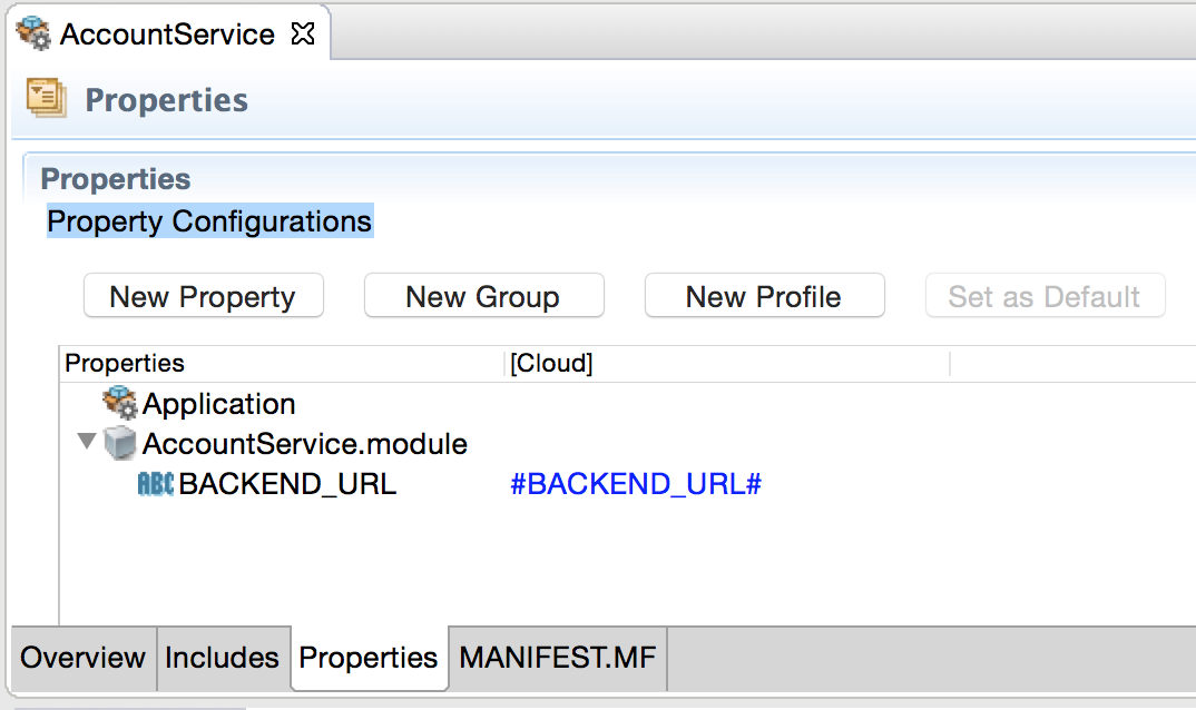 For example, AccountService/Dev/BACKEND_URL