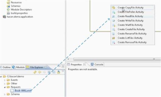 - In the Project Explorer, select a file such as a WSDL file that you want to use to create an activity.