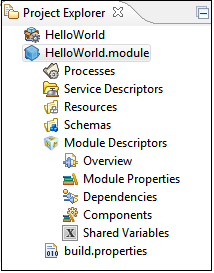 Click the process package, for example, "HelloWorld", and then click the Create a new Business Works Process