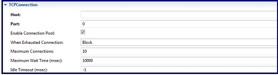 | Maximum Wait Time | This is the maximum wait time in milliseconds to connect to the TCP server. This parameter is enabled only if connection pooling is enabled.