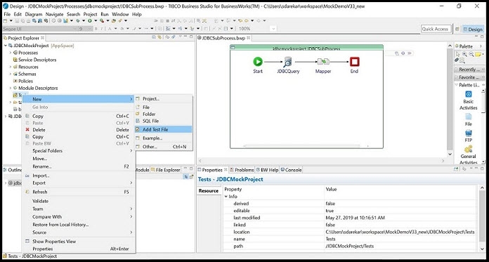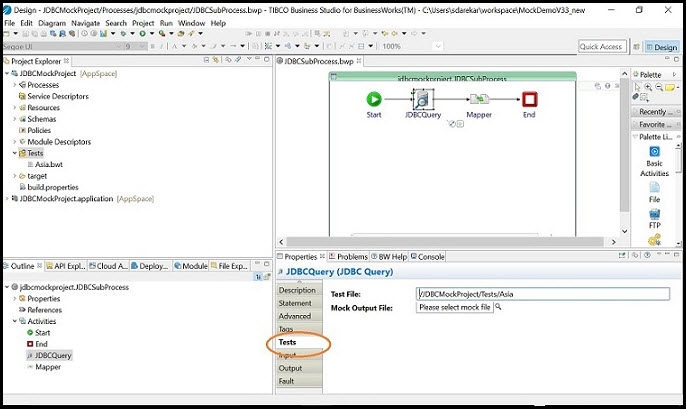 TIBCO BusinessWorks Container EditionTIBCO Business Studio for BusinessWorks activities. Now a dummy output can be added to mock activities that can be used in Unit testing for successful execution. The mocking support can be used to mock the activities from processes or sub-processes.