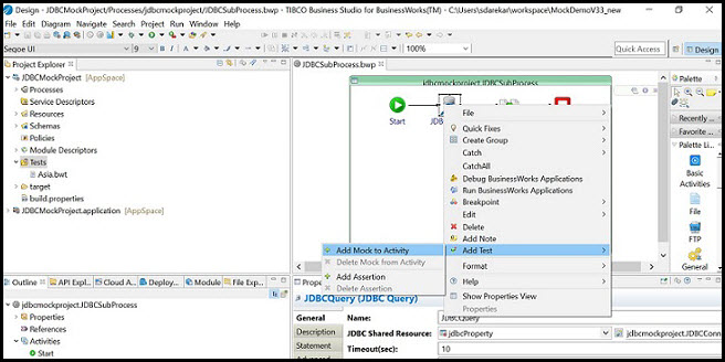TIBCO BusinessWorks Container EditionTIBCO Business Studio for BusinessWorks activities, we need to mock the