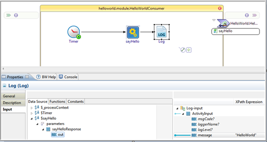 - Drag and drop the HelloWorldSOAP portType to the right of the process editor.