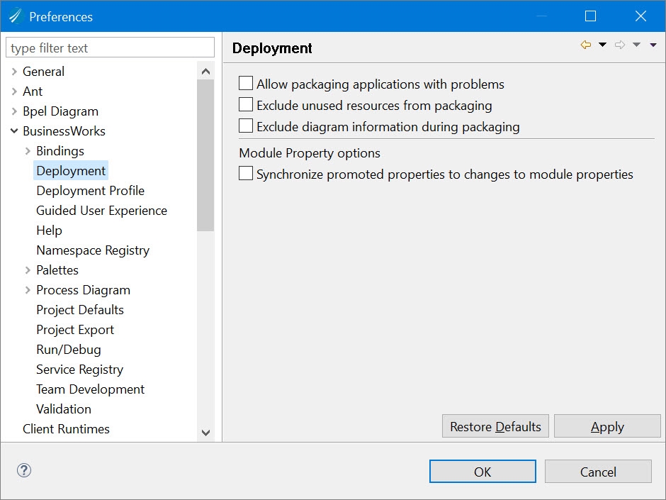 To generate an application archive file (.EAR) without unused resources, select the check box in the Preferences dialog box.