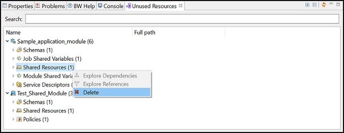 To delete all the unused resources together in one go, select all the resources and right-click . However, you need to repeat this process more than once to remove all unused resources.