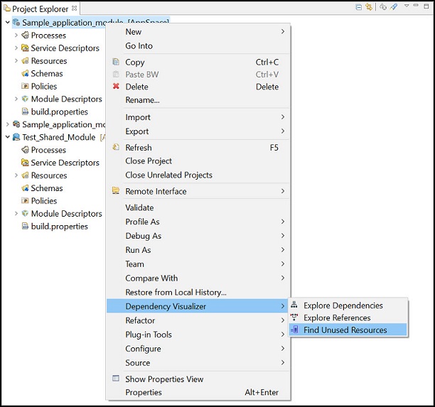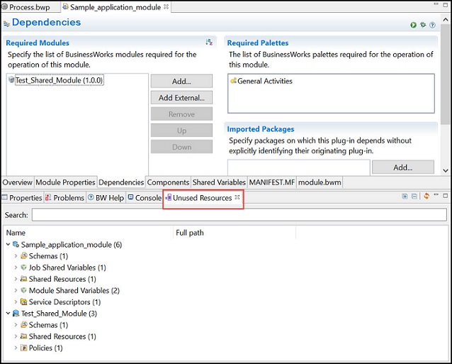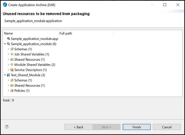 When you create an .EAR file, preview of unused resources is displayed in the Create Application Archive wizard.