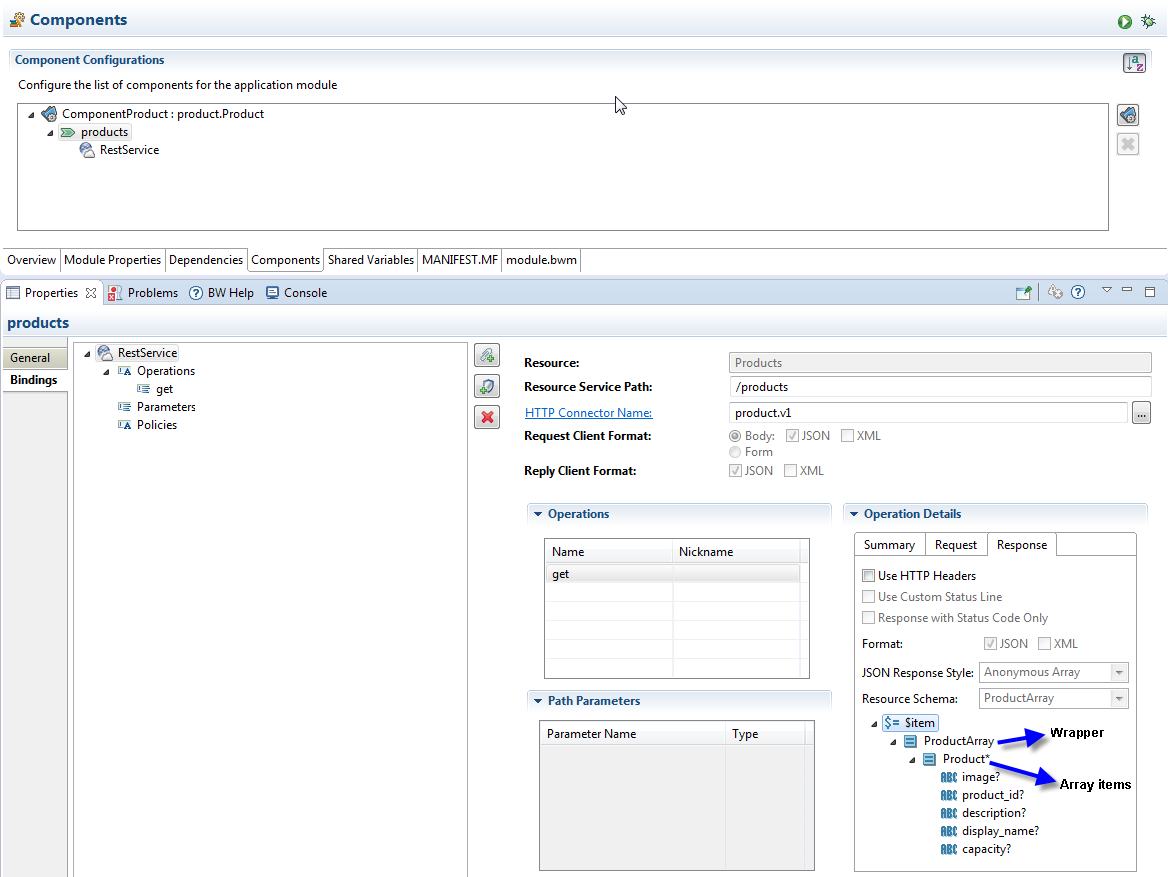 Configuring an array in REST binding in TIBCO Business Studio for BusinessWorks