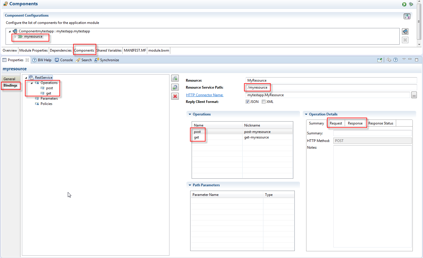 - In the Operations Details box, click the Response tab.