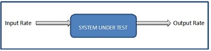 In the above example, the X axis characterizes the input rate, and the Y axis represents the output rate. The system is exposed to load at a controlled rate and is in a steady-state for some period of time. After an initial stabilization period, both the input and output rates are measured, providing one data point for the performance curve. This example assumes that all other factors are being held constant.